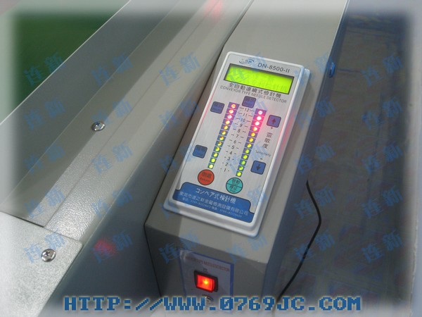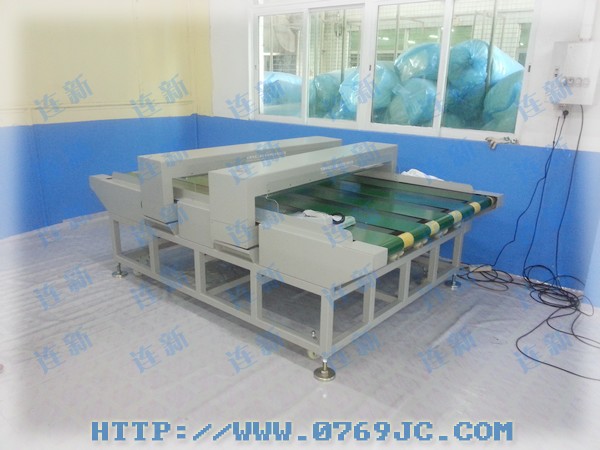 香港某江纤维制品有限公司经客户指定购买连新牌超宽幅双探头输送带式检针机一台用于检测所供应的棉织品!设备名称:连新牌DN-8500-II超宽幅双探头输送式检针机(定制)检测宽度:1.5米,检测高度15cm 检测精度1.0mm 上下双龙门检测,性能稳定可靠!