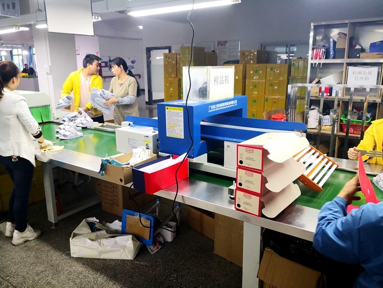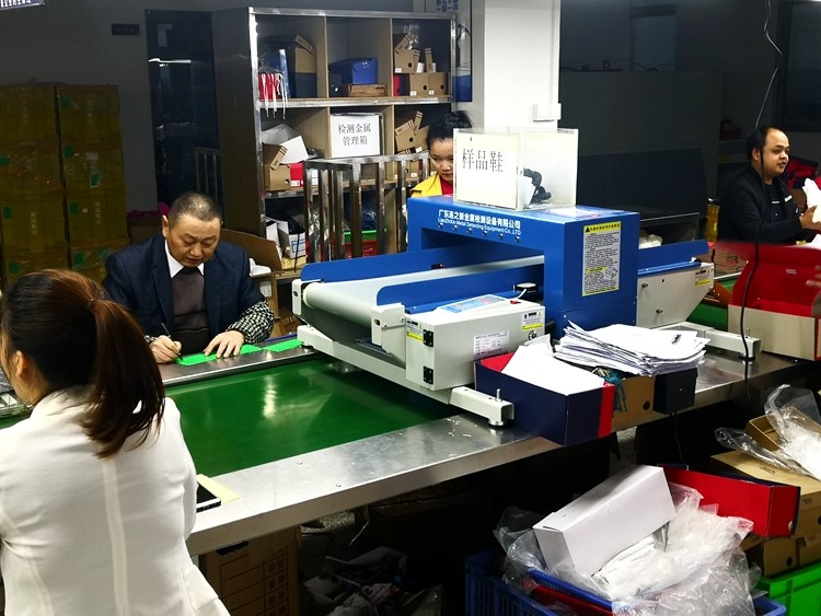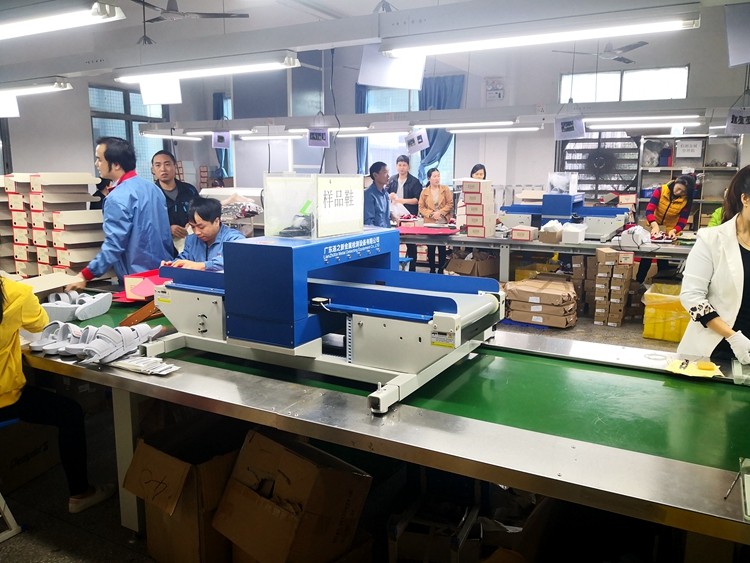 随着竞争越来越厉害。工厂都要打起精神来仔细应对客户要求。金属利器管控是最后也是最重要的一个环节。连之新流水线上检针机为企业提供了金属利器管控检针检测保障。不会额外占用通道,只需要将检针机放到流水线上即可在线进行检针作业。案例为厚街溪头某诚鞋厂使用现场。