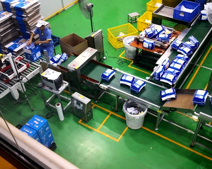 广州市汉氏卫生用品有限公司是一家有着30多年历史,集设计、研发、生产于一体的中国台湾与内陆合资的大型健康生活用品企业,生产基地坐落于广州花都。作为德国著名婴童消费品公司Teddybar international GmbH旗下产品——泰迪熊纸尿裤的生产制造商,汉氏拥有集中德两地专业科研人员的产品研发团队以及严格遵循中欧两地一级标准的生产环境。多年来,汉氏纸业一直与连之新金属检测机有合作,前后采用连之新进二十台金检机用于其广州生产基地的日常金属异物检测,保证高品质的产品服务社会和大众是汉氏的不二宗旨!