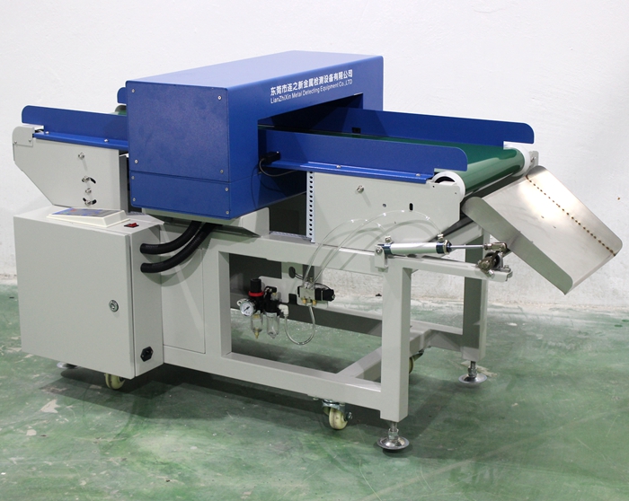 连新牌JZQ-7300B型翻板式输送带式检针机专为高尔夫球等球体\辅料\饰品\鞋材等小件物品检针设计制作,检测到金属异物的问题产品可自动翻板排除.空间占用少及电源消耗量更低,全钢架静电喷涂工艺制作.实用,耐用,美观!