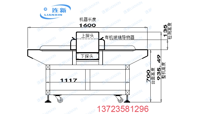 说明:灵敏度的高低由检测高度(即通道或龙门)来决定最高检测精度。龙门越高,灵敏度就相应降低。以上对应的高度和检测标准是在空机状态下的检测结果;检测通道高度和宽度,都可以按要求定做!