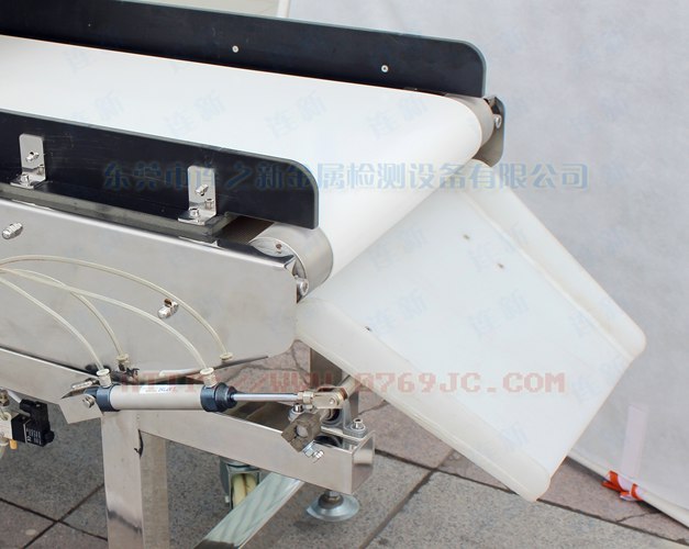 該型金屬檢測儀為氣動翻板排除式全金屬檢測儀,具有翻板排除機構,發現金屬異物的次品自動通過翻板機構剔除不良品,適用于流水線作業,主要元部件采用原裝進口或外資品牌配件。主要用于回收料再生料的金屬異物探測排除!