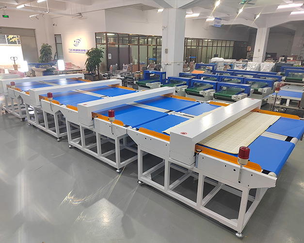 适用场所: 用于检测布料、无纺布、刺绣品、床单、被子、毛巾、浴巾、地毯、工艺品、纸板、木板等所有宽幅纺织品和片材中混入的断针、铁屑、铁丝、刀片、金属工具等金属异物。