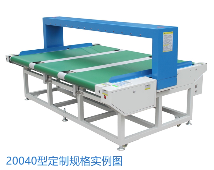 适用场所: 用于检测布料、无纺布、刺绣品、床单、被子、毛巾、浴巾、地毯、工艺品、纸板、木板等所有宽幅纺织品和片材中混入的断针、铁屑、铁丝、刀片、金属工具等金属异物。